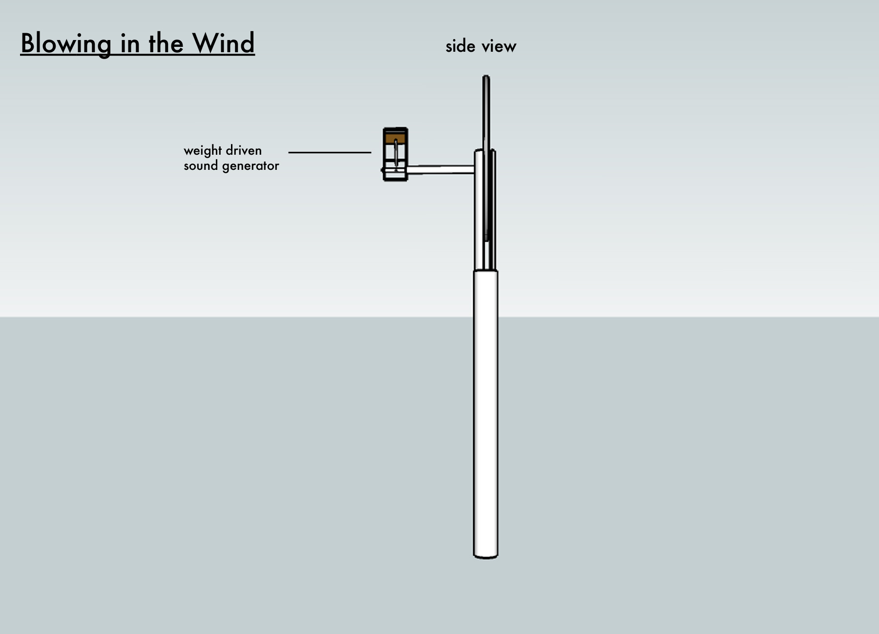 Proposal for Metamatic Research Initiative concept : To realise a new kinetic sound & light work, autonomous & unplugged, generating a composition that is created by a combination of factors. materials : Using a simple bicycle hub generator, flexible solar panels and gravity driven mechanical sound generators, 'klappoteks'- Sixteen 3.50m tall poles with bicycle wheels on top are arranged in a 9 mtr diameter circle. Each unit is divided into column and head section apart from the resulting tone that they make they are identical. When wind blows the wheels turn and charge batteries stored in the column of the unit. When sun shines the solar panel plus wind vanes charge the batteries. At night the work is illuminated by a light composition. Foot pedal located at the base of each column is used to engage the sound mechanism. The pedal is 'pumped' and in turn raises a weight located inside the column. The weight then is released in turn driving a pulley system which engages the mechanical sound generators. All mechanics are hidden inside the column and head sections to protect from weather. The composition is affected by the following factors. Firstly the sound generators are individually tuned by us. Secondly the user, how high they pump the weight and which unit or units they select. Thirdly the weather conditions. Lastly a communication system will be implemented between the units. Based on a laser and sensor combination that measures the acoustic activity of its neighbour. It will generate a sense of harmony and organisation that in time influences the sonic experience. The composition principles could be best compared to the flocking behaviour animals such as birds and fish exhibit when moving in groups. When the installation is passive it just generates electricity. When activated by physical labor it creates differing rhythmical and a-rhythmical sounds that then can be tuned by participant giving unlimited possibilities. This is just a proposal for a new work. Meaning its final shape will be defined by the creative process when building it. |